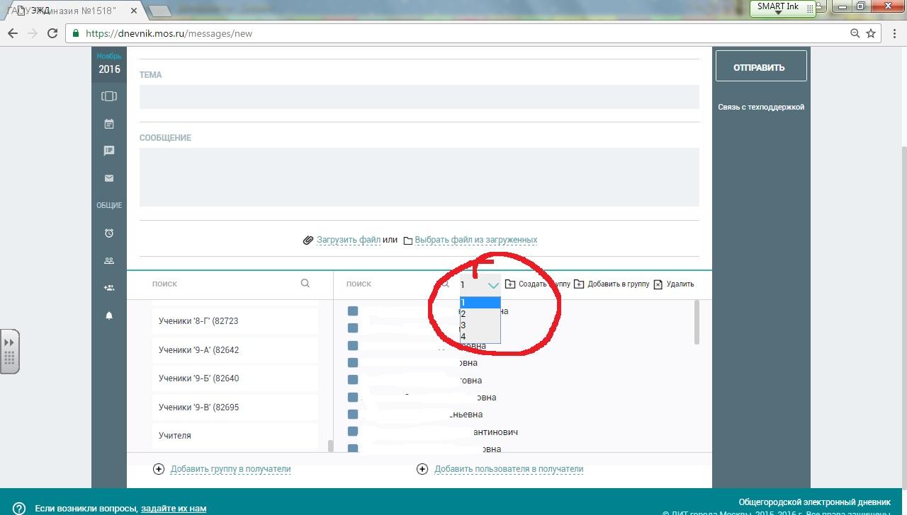 Здравствуйте. Благодарю за быстрый ответ по поводу сообщений! Нашла две группы под названием "Учителя". В одной фамилии на А-Ж, в другой на А-Г. Учителя, которому хотела задать вопрос, ни в одной группе нет. Можно ли как-то доработать эту функцию? Благодарю заранее. С уважением, Маркова Е.В.