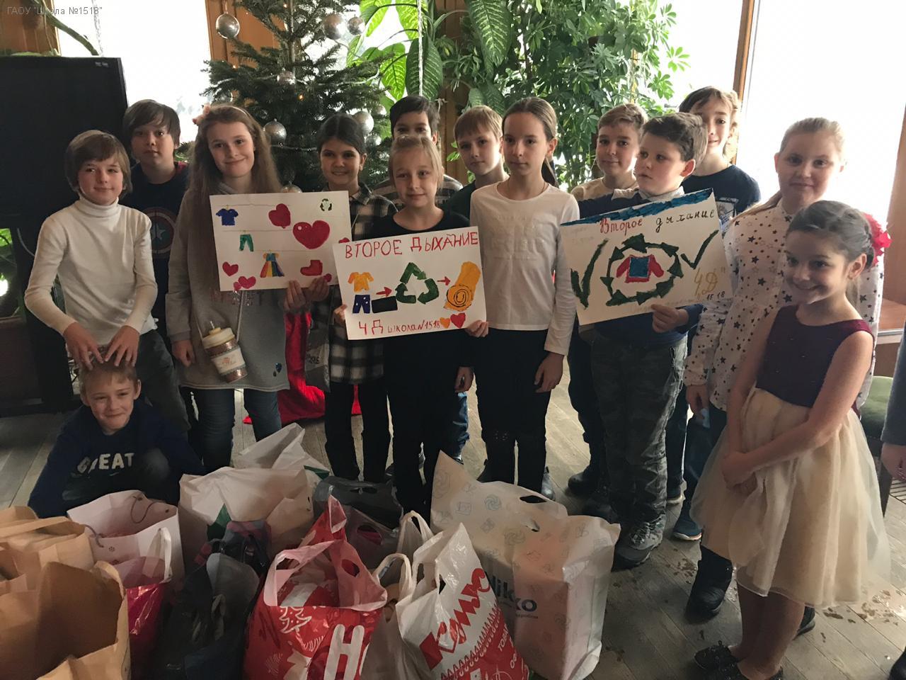 Делаем добро вместе! Вместе со всей школой в акции "Второе дыхание" участвовали ребята 4-Д класса под руководством классного руководителя Ковалевой Н.М. и учителя ИЗО Юшкевич Ю.В. Дети совместно с родителями не только собрали и отсортировали старые вещи, но и подробно изучили процесс переработки вещей, выразили свое видение акции и пожелания в рисунках. От родителей и учеников нашего класса поздравляем весь педагогический коллектив, администрацию школы и всех сотрудников с наступающим новым годом! Всего самого наилучшего в новом 2019 году!