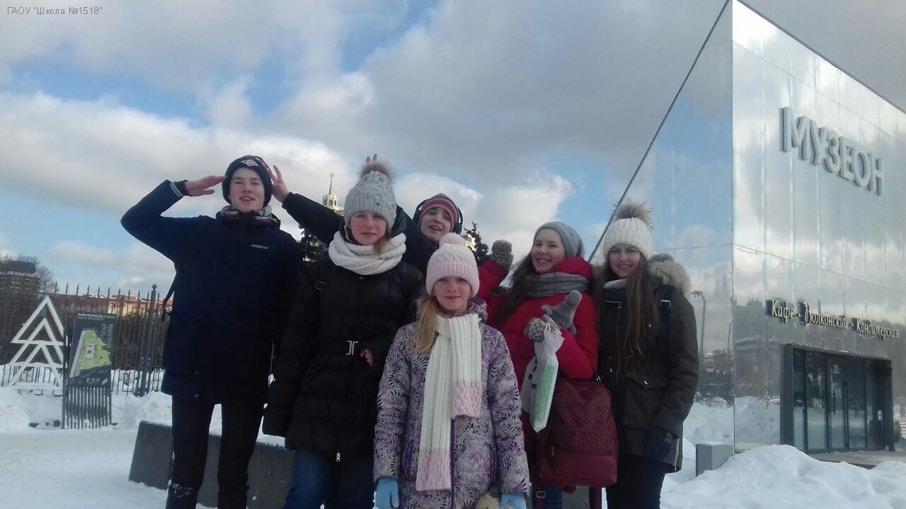 В 8"Д" классе с 5-го класса сложилась добрая традиция: в каникулы ребята идут в музей. Вот и в февральские каникулы группа ребят вместе с неутомимым классным руководителем Селивановой Юлией Владимировной, несмотря на мороз, отправилась в парк Музеон, а затем в Дом-музей композитора А.Скрябина. Посещая музеи и парки ребята попутно проходят этап Московской олимпиады "Музеи.Парки.Усадьбы". За это время (3,5 года!) ребята не только расширили свой кругозор, узнали много нового и интересного, но и научились взаимопомощи (в поиске ответов на задания олимпиады) и еще крепче сдружились. Мы, родители, всегда очень рады таким веселым и познавательным "походам", за что выражаем огромную благодарность нашему любимому классному руководителю Ю.В. Селивановой!
